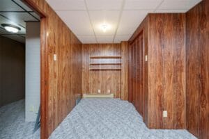 The fully finished basement includes a rec room, office, pantry, and utility/laundry room. An oversized double garage connects to the house through a massive breezeway for year-round sheltered entry.