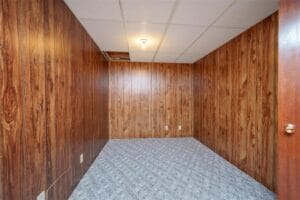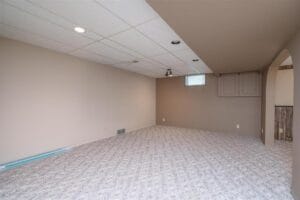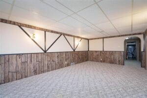 The fully finished basement includes a rec room, office, pantry, and utility/laundry room. An oversized double garage connects to the house through a massive breezeway for year-round sheltered entry.