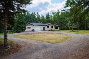 Outbuildings include a quonset and shop, with 600-amp electrical service to the property (400-amp panel in the shop and 200-amp panel in the home). The roundabout driveway adds convenience and easy access.