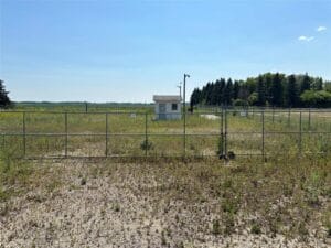 This property offers 3.44 acres at the corner of Netley Rd and Hwy No. 8, featuring a 720-square-foot uninsulated steel machine shed with a concrete pad, built in 1980.